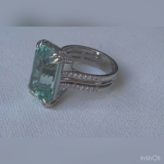 13.7ct of Aquamarine with 0,80ct of D-F diamonds in 18ct white gold