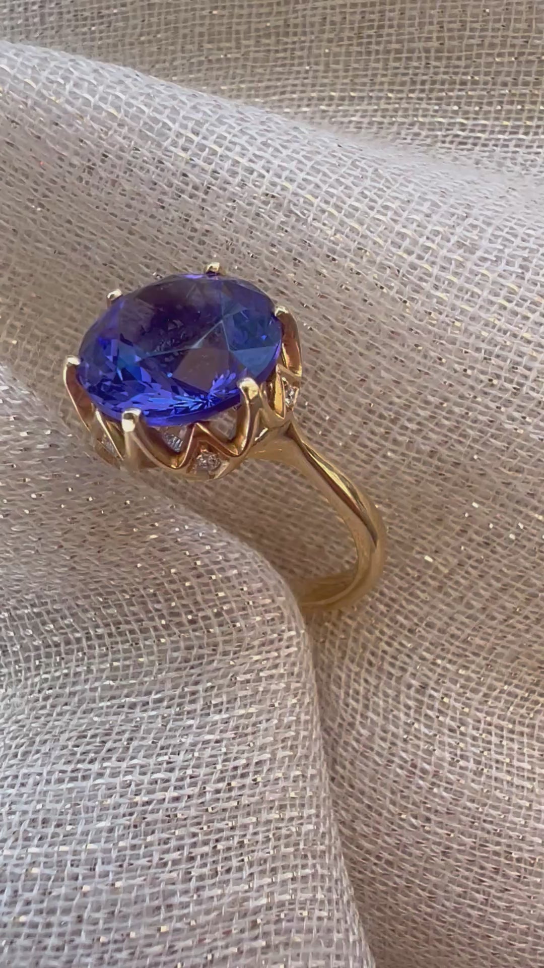 5,58ct round Tanzanite excellent colour set in 18ct yellow gold